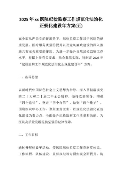 【七哥公文】2025年:2025年xx医院纪检监察工作规范化法治化正规化建设年方案(五)+更多免费公文+VX:QiGeGongWen2024