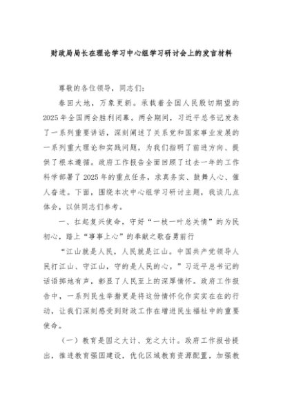 / 【七哥公文】2025年:财政局局长在理论学习中心组学习研讨会上的发言材料+更多免费公文+VX:QiGeGongWen2024