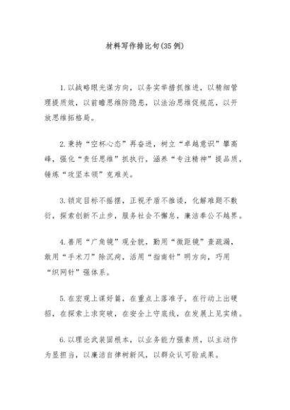 / 【七哥公文】2025年:(35例)材料写作排比句+更多免费公文+VX:QiGeGongWen2024