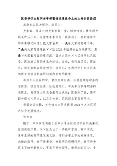 / 【七哥公文】2025年:区委书记在慰问老干部暨情况通报会上的主持讲话提纲+更多免费公文+VX:QiGeGongWen2024