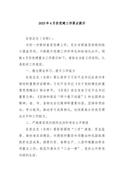 / 【七哥公文】2025年:2025年4月份党建工作要点提示+更多免费公文+VX:QiGeGongWen2024