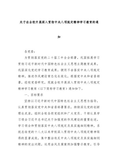 【七哥公文】2025年:关于在全校开展深入贯彻中央八项规定精神学习教育的通知+更多免费公文+VX:QiGeGongWen2024