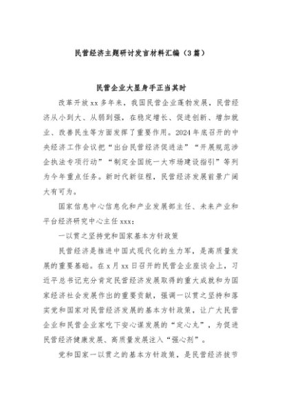 / 【七哥公文】2025年:(3篇)民营经济主题研讨发言材料汇编+更多免费公文+VX:QiGeGongWen2024