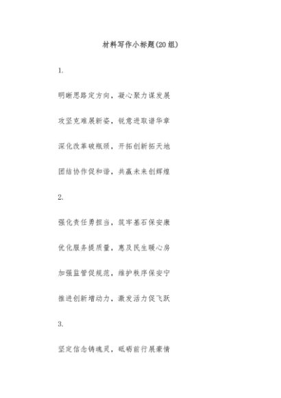 【七哥公文】2025年:(20组)材料写作小标题+更多免费公文+VX:QiGeGongWen2024