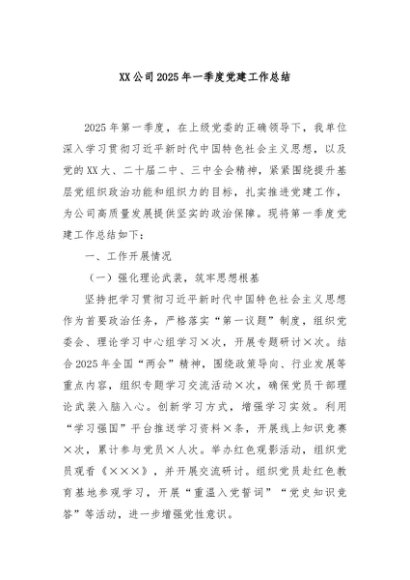 / 【七哥公文】2025年:XX公司2025年一季度党建工作总结+更多免费公文+VX:QiGeGongWen2024