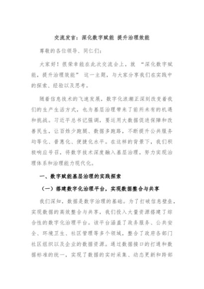 / 【七哥公文】2025年:交流发言:深化数字赋能 提升治理效能+更多免费公文+VX:QiGeGongWen2024