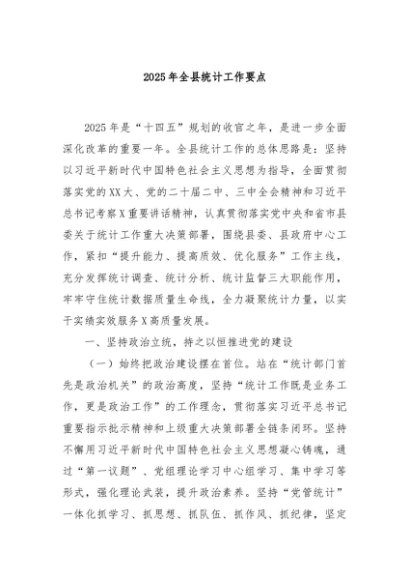 / 【七哥公文】2025年:2025年全县统计工作要点+更多免费公文+VX:QiGeGongWen2024