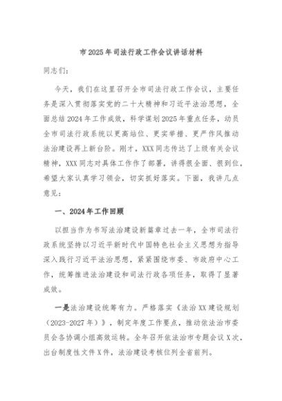 / 【七哥公文】2025年:市2025年司法行政工作会议讲话材料+更多免费公文+VX:QiGeGongWen2024