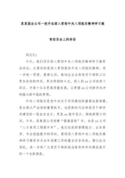 【七哥公文】2025年:某某国企公司一把手在深入贯彻中央八项规定精神学习教育动员会上的讲话+更多免费公文+VX:QiGeGongWen2024