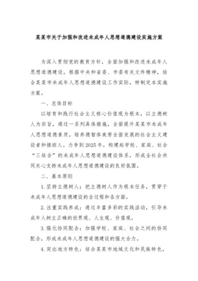 / 【七哥公文】2025年:某某市关于加强和改进未成年人思想道德建设实施方案+更多免费公文+VX:QiGeGongWen2024