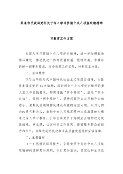 【七哥公文】2025年:某某市民政局党组关于深入学习贯彻中央八项规定精神学习教育工作方案+更多免费公文+VX:QiGeGongWen2024