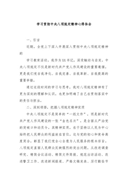 / 【七哥公文】2025年:学习贯彻中央八项规定精神心得体会2+更多免费公文+VX:QiGeGongWen2024