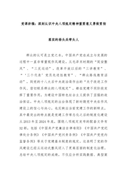 【七哥公文】2025年:党课讲稿:深刻认识中央八项规定精神重要意义勇做贯彻落实的排头兵带头人+更多免费公文+VX:QiGeGongWen2024