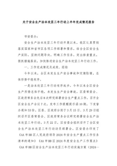 / 【七哥公文】2025年:关于安全生产治本攻坚三年行动上半年完成情况报告+更多免费公文+VX:QiGeGongWen2024
