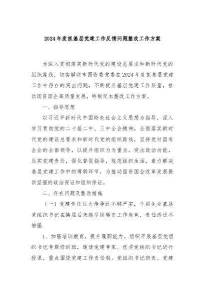 / 【七哥公文】2025年:2024年度抓基层党建工作反馈问题整改工作方案+更多免费公文+VX:QiGeGongWen2024