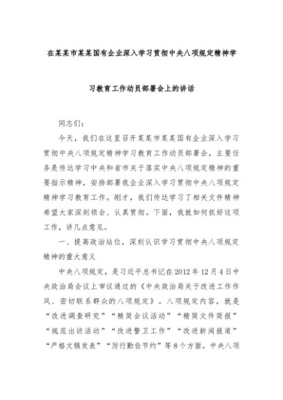 【七哥公文】2025年:在某某市某某国有企业深入学习贯彻中央八项规定精神学习教育工作动员部署会上的讲话+更多免费公文+VX:QiGeGongWen2024