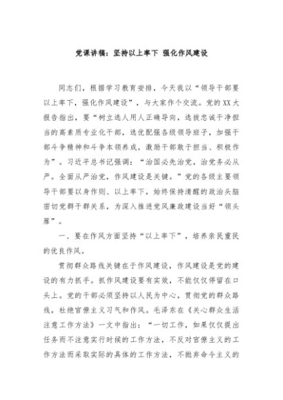/ 【七哥公文】2025年:党课讲稿:坚持以上率下 强化作风建设+更多免费公文+VX:QiGeGongWen2024