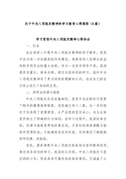 / 【七哥公文】2025年:(8篇)关于中央八项规定精神的学习教育心得感悟+更多免费公文+VX:QiGeGongWen2024