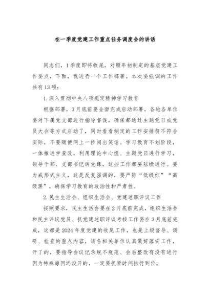 / 【七哥公文】2025年:在一季度党建工作重点任务调度会的讲话+更多免费公文+VX:QiGeGongWen2024