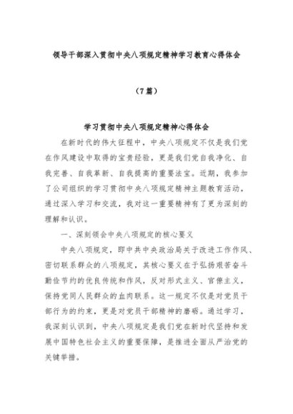 【七哥公文】2025年:(7篇)领导干部深入贯彻中央八项规定精神学习教育心得体会+更多免费公文+VX:QiGeGongWen2024