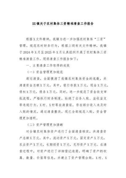 【七哥公文】2025年:XX镇关于农村集体三资精准清查工作报告+更多免费公文+VX:QiGeGongWen2024