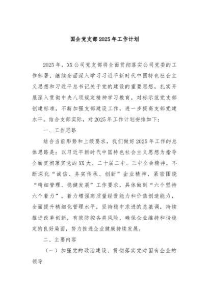 / 【七哥公文】2025年:国企党支部2025年工作计划+更多免费公文+VX:QiGeGongWen2024