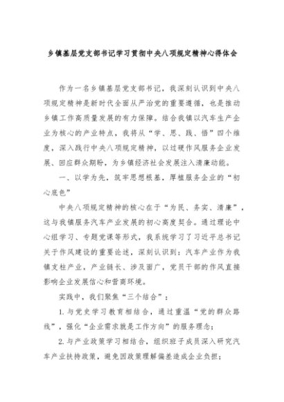 【七哥公文】2025年:乡镇基层党支部书记学习贯彻中央八项规定精神心得体会+更多免费公文+VX:QiGeGongWen2024