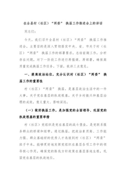 / 【七哥公文】2025年:在全县村(社区)“两委” 换届工作推进会上的讲话+更多免费公文+VX:QiGeGongWen2024