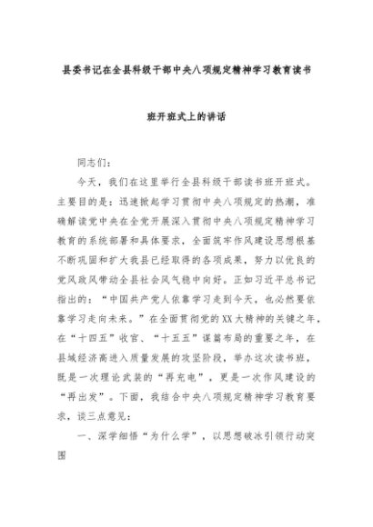 【七哥公文】2025年:县委书记在全县科级干部中央八项规定精神学习教育读书班开班式上的讲话+更多免费公文+VX:QiGeGongWen2024