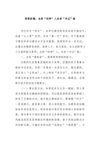 / 【七哥公文】2025年:党课讲稿:当好“四种”人走好“书记”路+更多免费公文+VX:QiGeGongWen2024