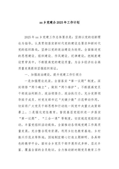 / 【七哥公文】2025年:xx乡党建办2025年工作计划+更多免费公文+VX:QiGeGongWen2024
