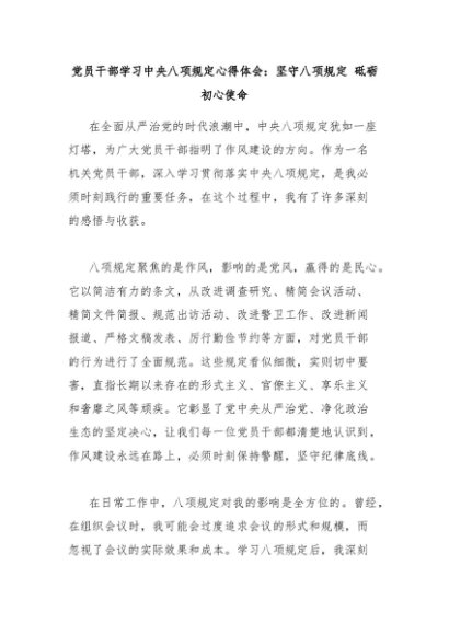 【七哥公文】2025年:党员干部学习中央八项规定心得体会:坚守八项规定 砥砺初心使命+更多免费公文+VX:QiGeGongWen2024