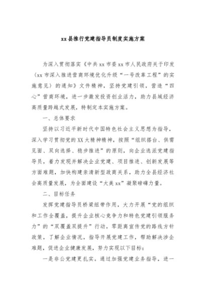/ 【七哥公文】2025年:xx县推行党建指导员制度实施方案+更多免费公文+VX:QiGeGongWen2024