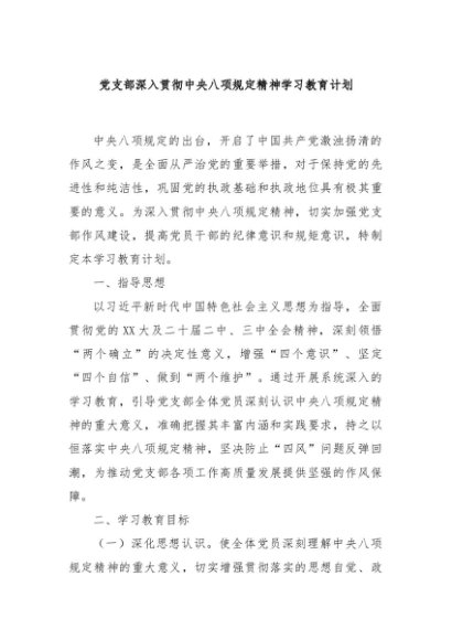 / 【七哥公文】2025年:党支部深入贯彻中央八项规定精神学习教育计划+更多免费公文+VX:QiGeGongWen2024
