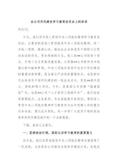 / 【七哥公文】2025年:在公司作风建设学习教育动员会上的讲话+更多免费公文+VX:QiGeGongWen2024