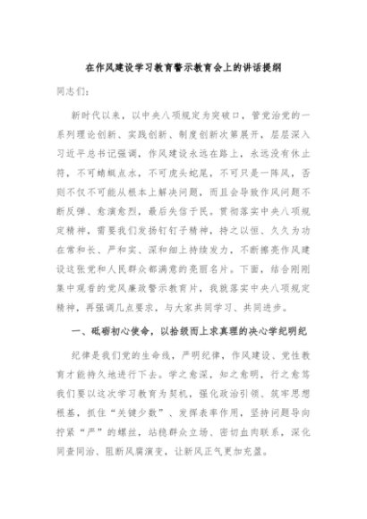【七哥公文】2025年:在作风建设学习教育警示教育会上的讲话提纲+更多免费公文+VX:QiGeGongWen2024