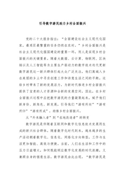 / 【七哥公文】2025年:引导数字游民助力乡村全面振兴+更多免费公文+VX:QiGeGongWen2024