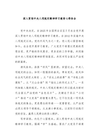 / 【七哥公文】2025年:深入贯彻中央八项规定精神学习教育心得体会+更多免费公文+VX:QiGeGongWen2024