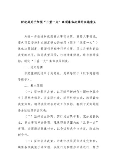 / 【七哥公文】2025年:财政局关于加强“三重一大”事项集体决策的实施意见+更多免费公文+VX:QiGeGongWen2024
