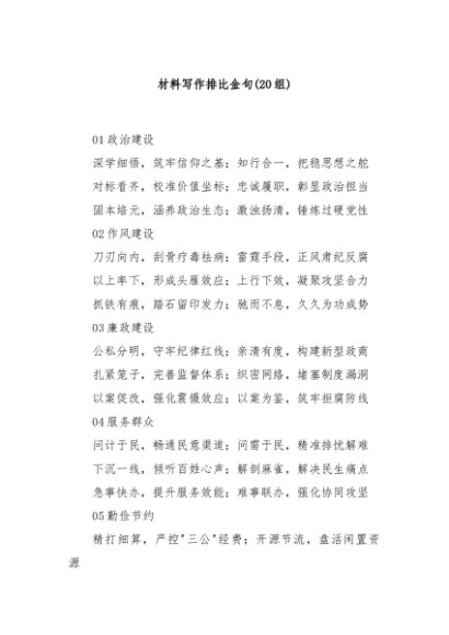 / 【七哥公文】2025年:(20组)材料写作排比金句+更多免费公文+VX:QiGeGongWen2024