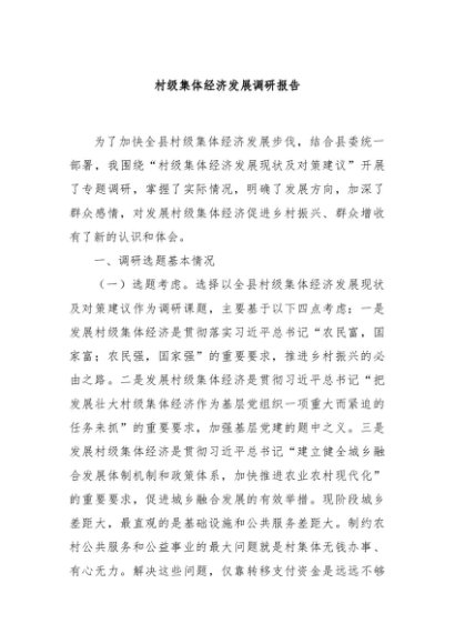 / 【七哥公文】2025年:村级集体经济发展调研报告+更多免费公文+VX:QiGeGongWen2024
