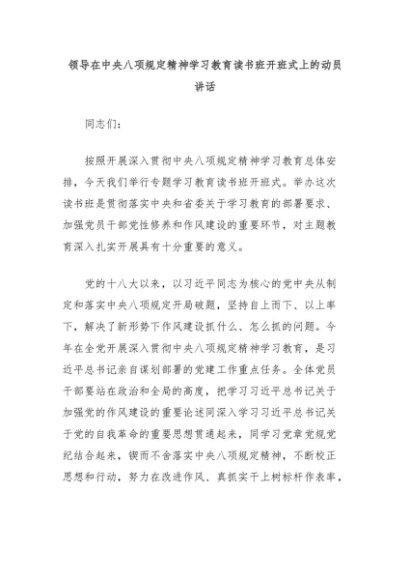 【七哥公文】2025年:领导在中央八项规定精神学习教育读书班开班式上的动员讲话+更多免费公文+VX:QiGeGongWen2024