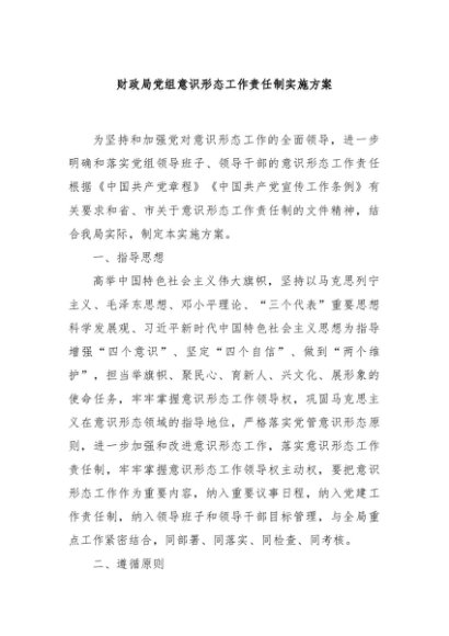 / 【七哥公文】2025年:财政局党组意识形态工作责任制实施方案+更多免费公文+VX:QiGeGongWen2024