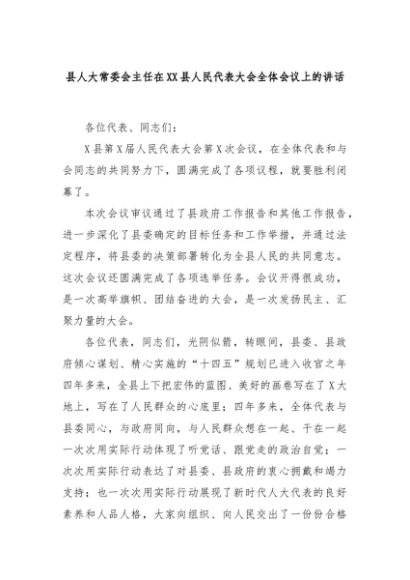 【七哥公文】2025年:县人大常委会主任在XX县人民代表大会全体会议上的讲话+更多免费公文+VX:QiGeGongWen2024