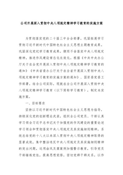 【七哥公文】2025年:公司开展深入贯彻中央八项规定精神学习教育的实施方案+更多免费公文+VX:QiGeGongWen2024