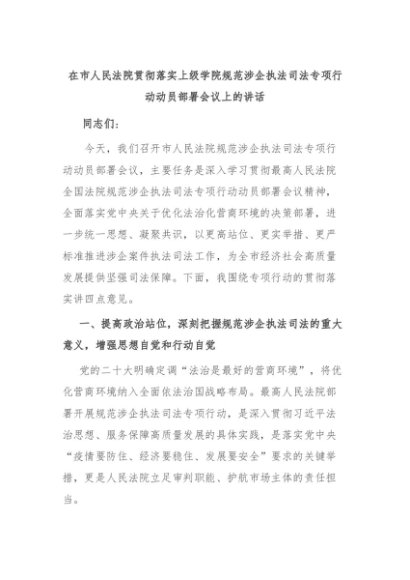 【七哥公文】2025年:在市人民法院贯彻落实上级学院规范涉企执法司法专项行动动员部署会议上的讲话+更多免费公文+VX:QiGeGongWen2024