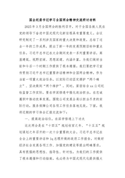 / 【七哥公文】2025年:国企纪委书记学习全国两会精神交流研讨材料+更多免费公文+VX:QiGeGongWen2024