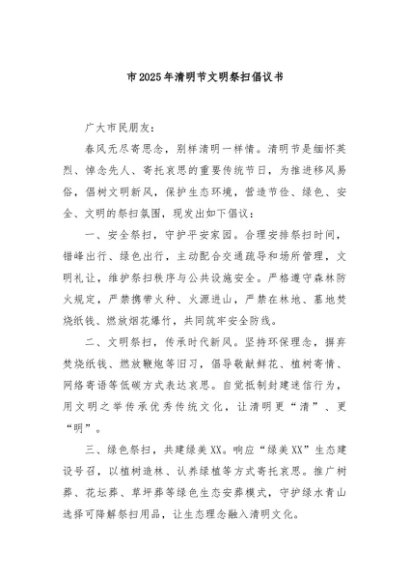 / 【七哥公文】2025年:市2025年清明节文明祭扫倡议书+更多免费公文+VX:QiGeGongWen2024