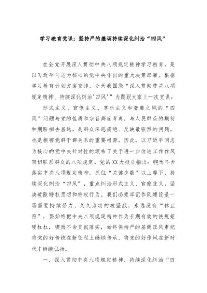 【七哥公文】2025年:学习教育党课:坚持严的基调持续深化纠治“四风”+更多免费公文+VX:QiGeGongWen2024