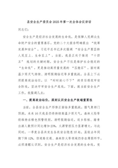 / 【七哥公文】2025年:县安全生产委员会2025年第一次全体会议讲话+更多免费公文+VX:QiGeGongWen2024